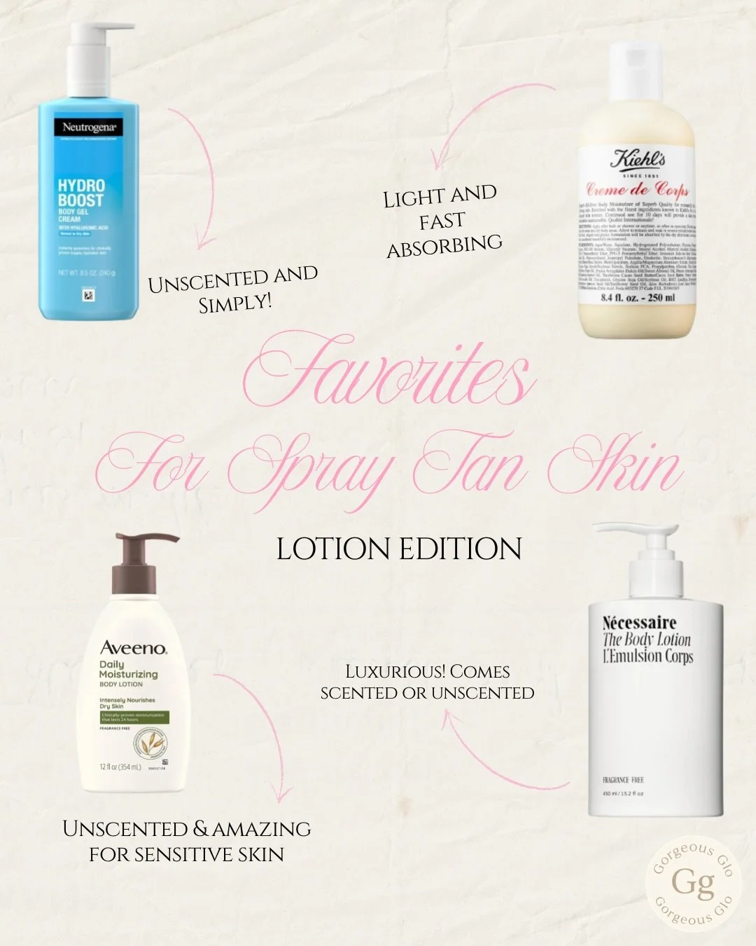 Gorgeous Glo’s signature, hand-applied spray tan is tailored to your unique skin tones at each visit. Your artist blends a fresh formula every time to ensure balanced, even coverage and a soft, natural glow that looks like your skin, just warmer.